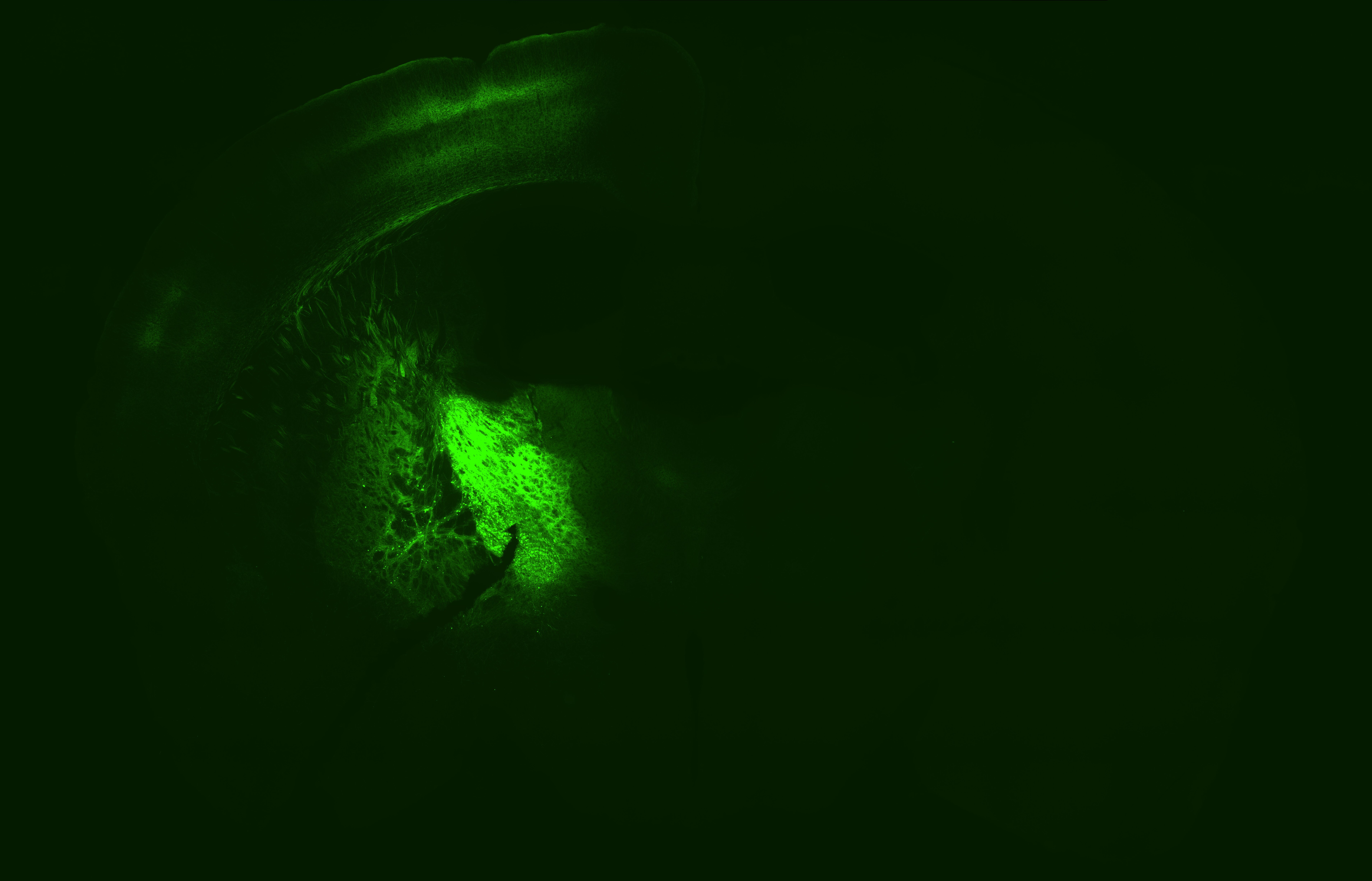 The brain has excitatory and inhibitory neurons to produce a delicate balance of activity, which supports our senses, actions, and thoughts. In this image, the two cell types were labeled with fluorescent molecules. A laser-scanning microscope was used to visualize the cells in a live mouse brain.